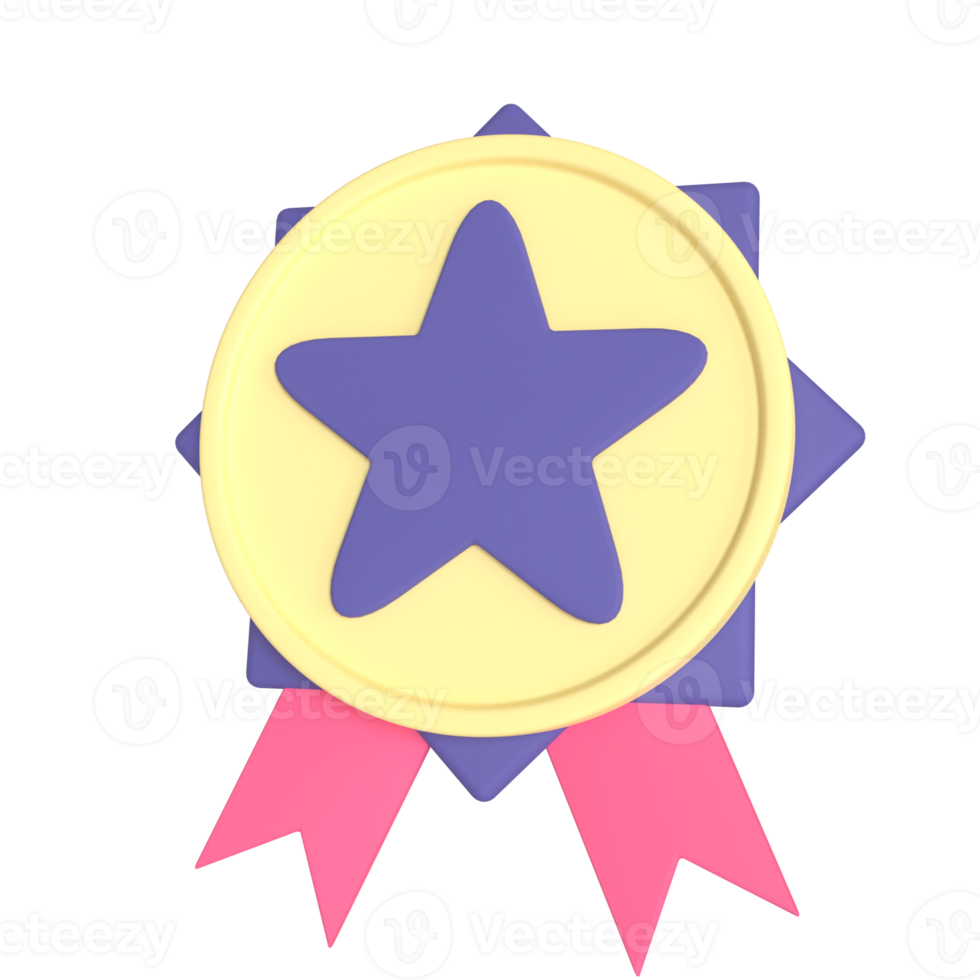 Star medal 3D rendering isolated on transparent background. Ui UX icon design web and app trend Pro PNG