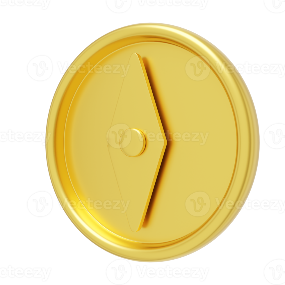 Compass gold metal, navigation, direction finding. 3D rendering. PNG icon on transparent background. Pro PNG