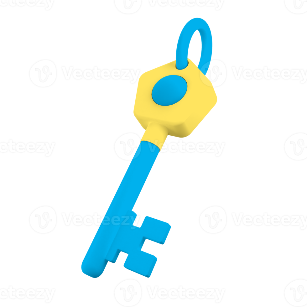 Key 3D rendering isolated on transparent background. Ui UX icon design web and app trend Pro PNG