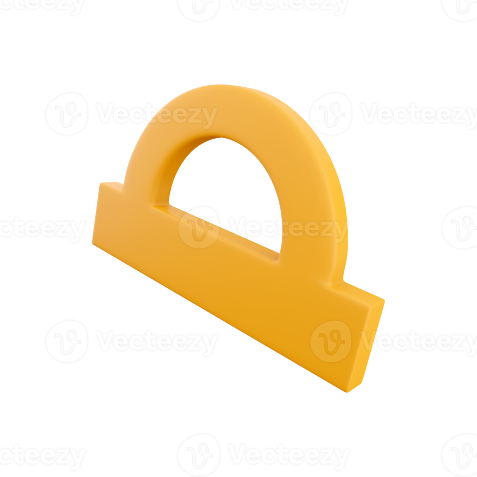 3D render half disk protractor degrees ruler 3d illustration rendering icon editable isolated. 3D render half disk protractor degrees ruler. Pro PNG