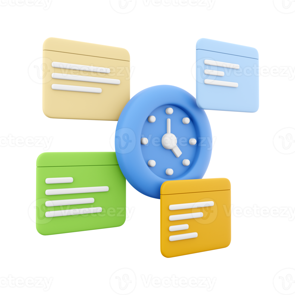 3d rendering clock and notifications icon. 3d render alarm clock and chat box icon. Clock and notifications. Pro PNG