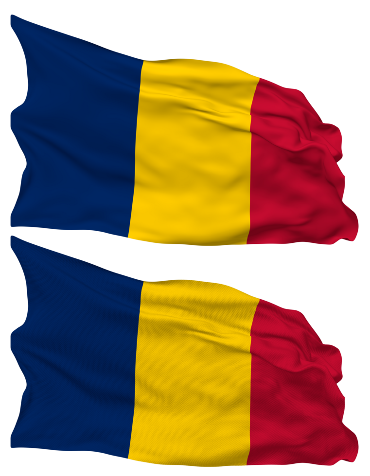 Chad Flag Waves Isolated in Plain and Bump Texture, with Transparent Background, 3D Rendering png