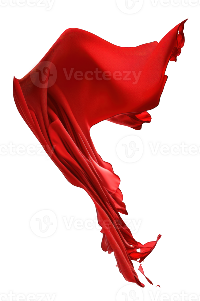 A vibrant red silk flies gracefully in mid-air against a transparent backdrop, creating a mesmerizing display of movement and color. Pro PNG