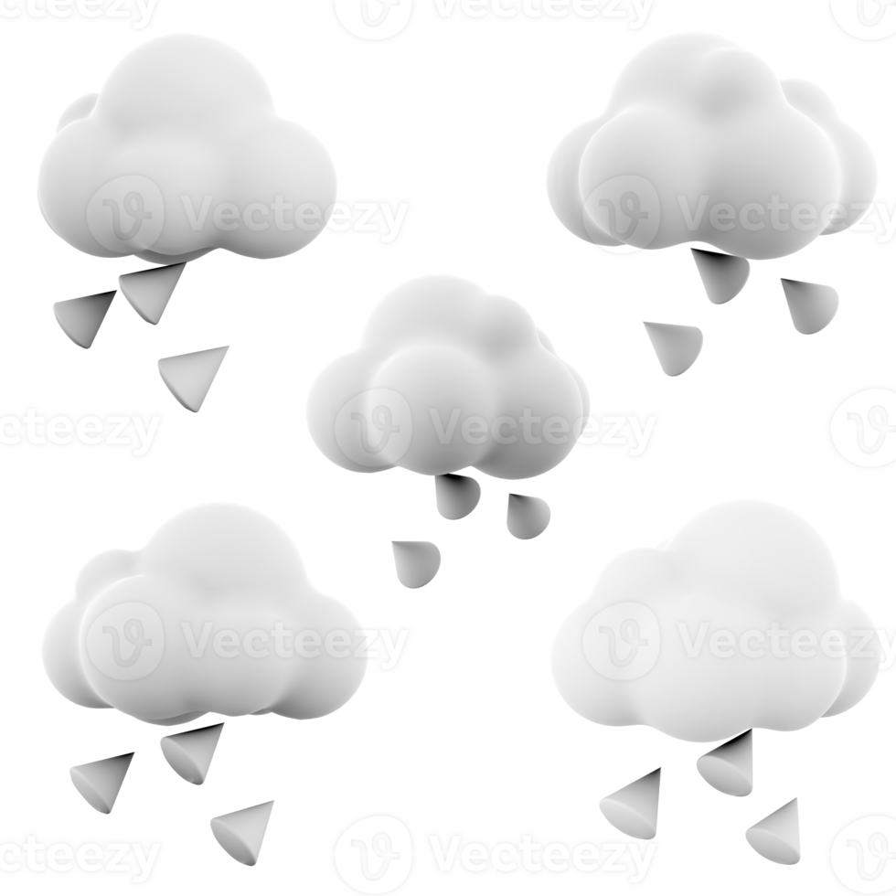 3d rendering hail with cloud icon set. 3d render Atmospheric precipitation in the form of small ice balls different positions icon set. Pro PNG