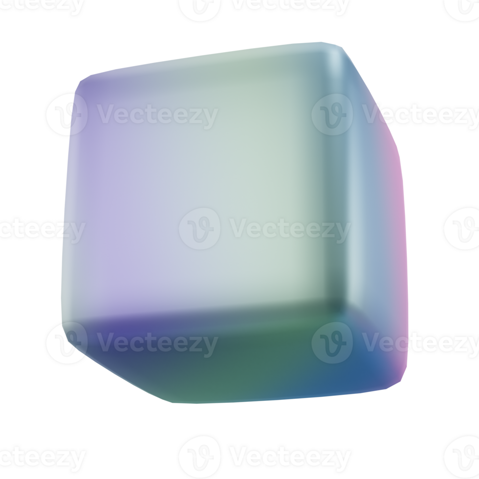 3d block object metal cube abstract geometric shape. Realistic glossy gradient luxury template decorative design illustration. Minimalist bright element mockup isolated transparent png Pro PNG