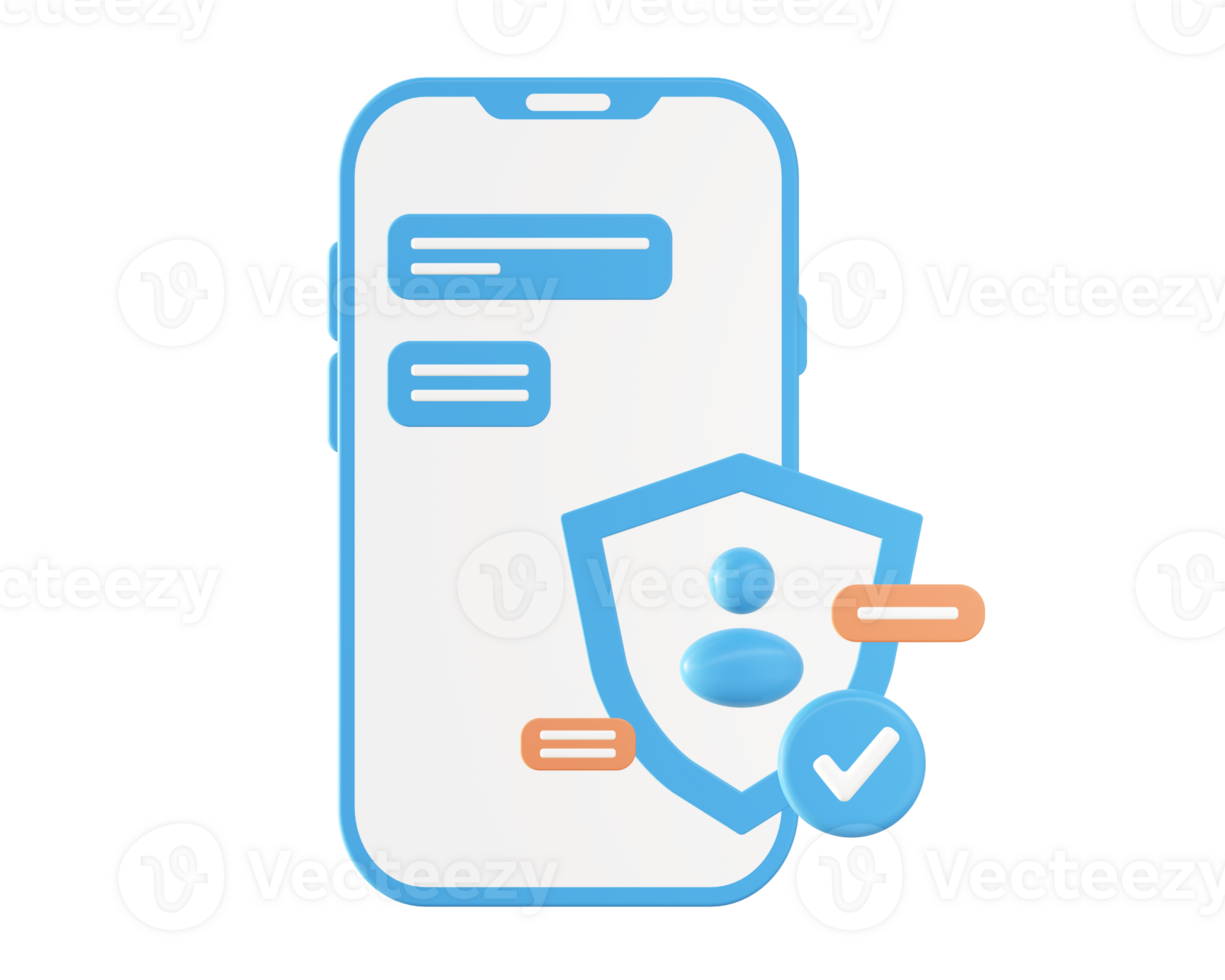 3d Smartphone and security system protection shield icon for UI UX web mobile apps social media ads design Pro PNG