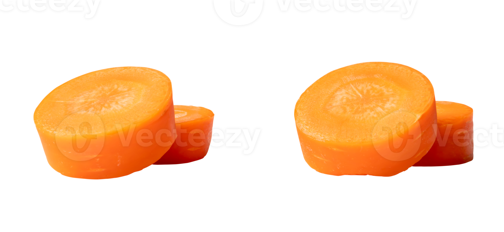 Front view of two pair of separated beautiful orange carrot slices isolated with clipping path in png file format. Carrot slice set or collection Pro PNG