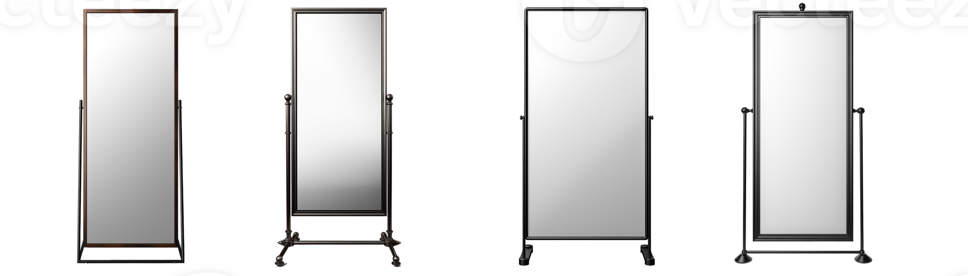 Set of standing mirror with metal frame. Rectangle standing mirror with modern metal frame. Isolated on transparent background. Generative AI Pro PNG