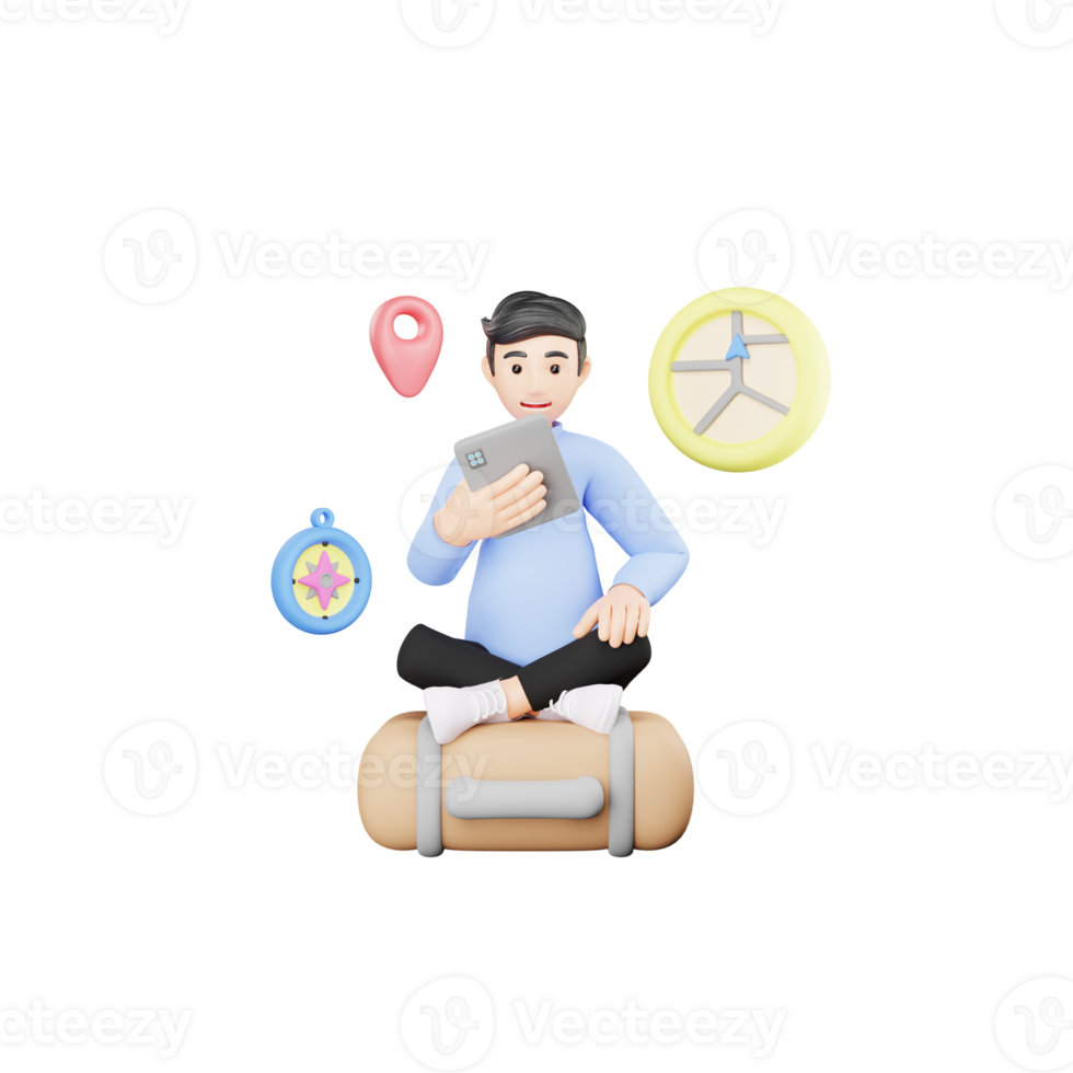 3D Character Illustration Using Mobile Navigation App - Finding the Way Pro PNG