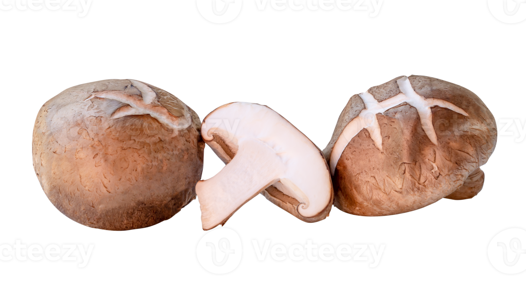 Front view of shiitake mushrooms with half in stack isolated with clipping path in file format Pro PNG