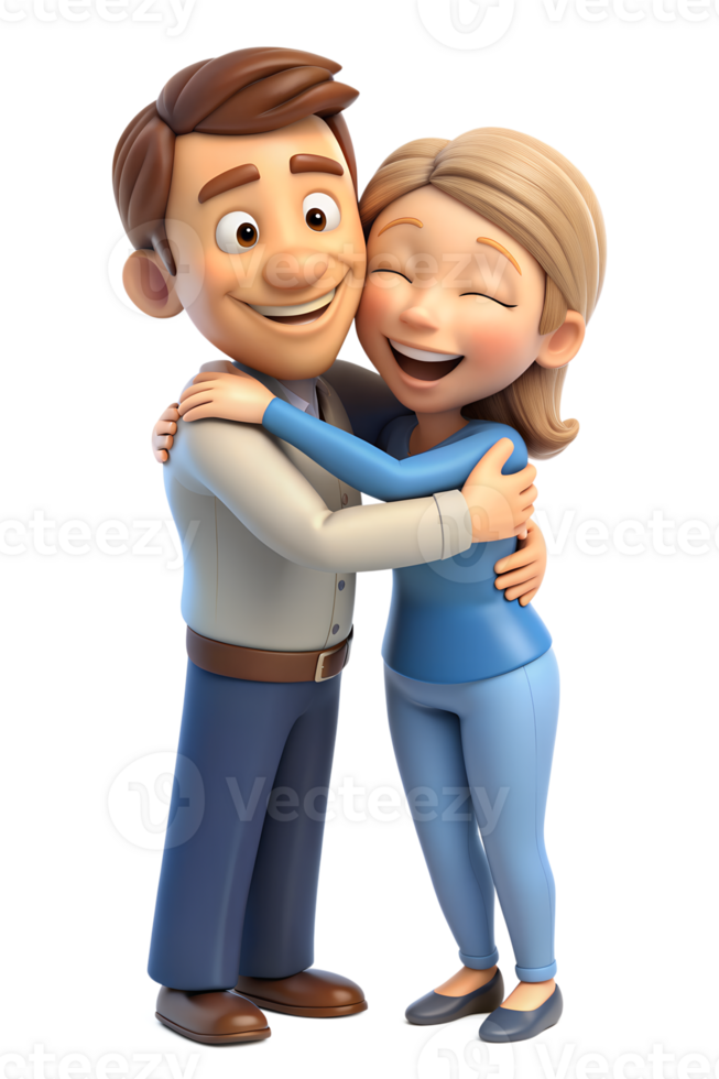 3d cartoon style of Show two people embracing, one with a reassuring smile and the other with a relieved expression, capturing support. isolated on background Pro PNG