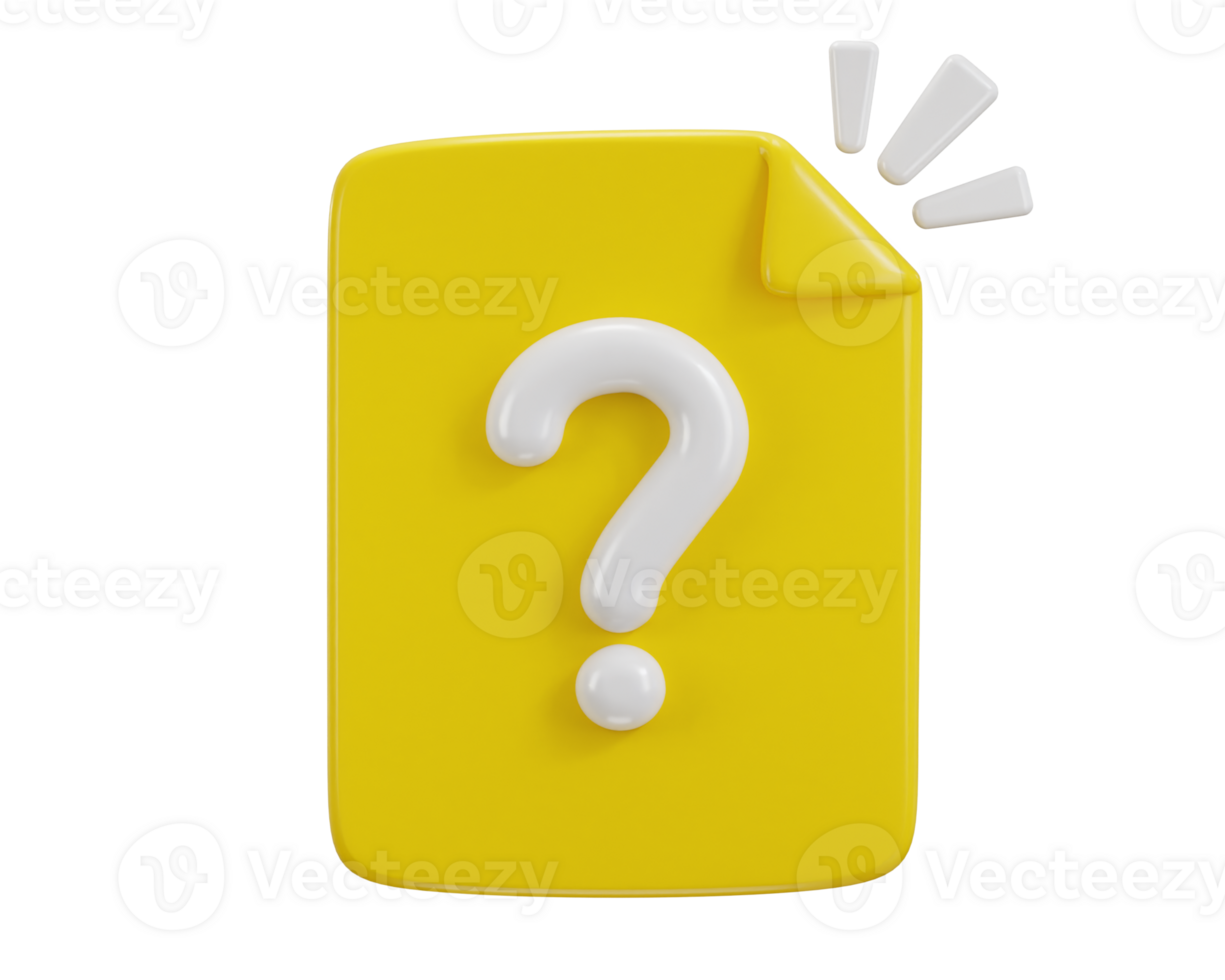 3d document paper with question mark paper document sheet with question sign faq question mark icon 3d render Pro PNG