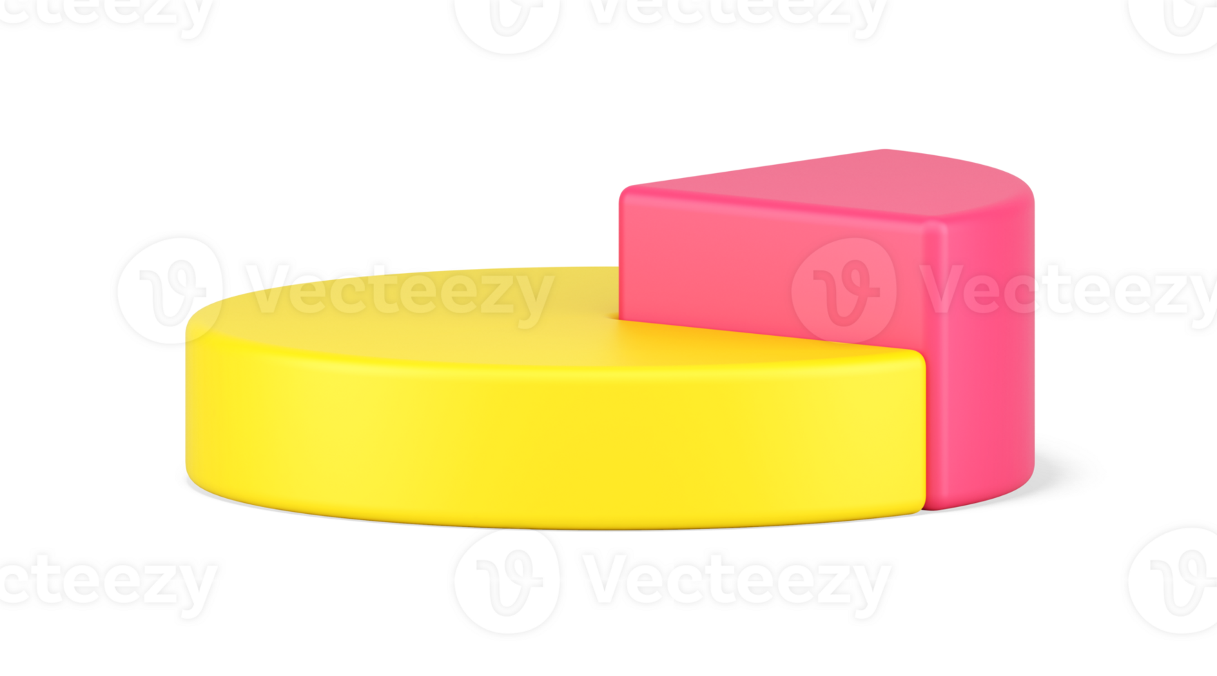 Pie chart side view 3d icon. Infographic volumetric yellow circle with highlighted triangular pink part Pro PNG