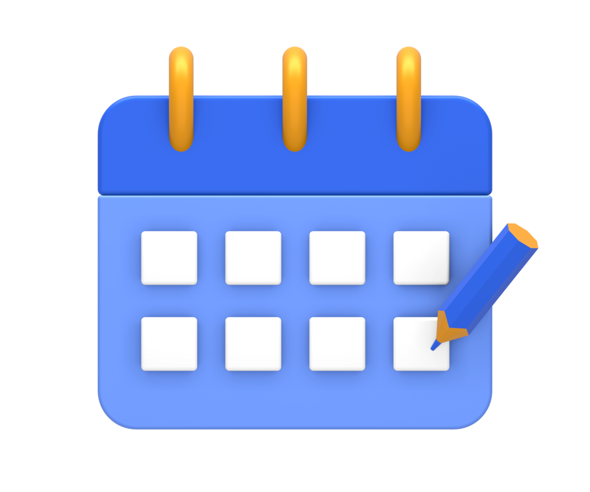 3D rendering of blue yellow calendar schedule date and time with pencil for UI UX web mobile apps social media ads design Free PNG