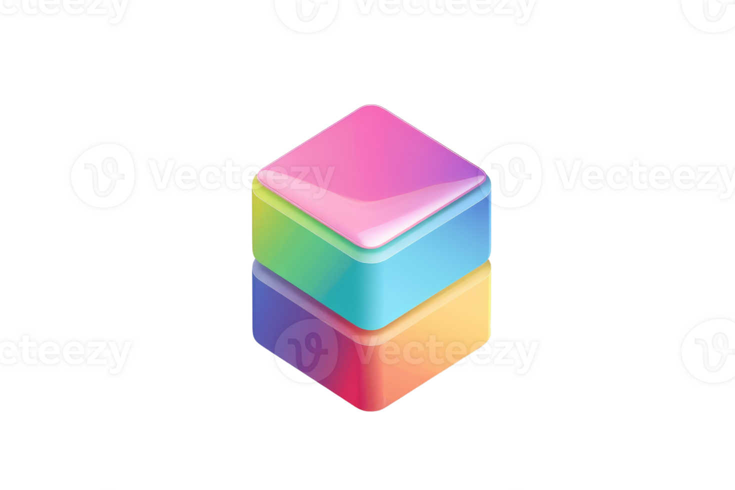 A colorful cube with a rainbow pattern on it. The cube is made of glass and has a shiny, reflective surface Pro PNG
