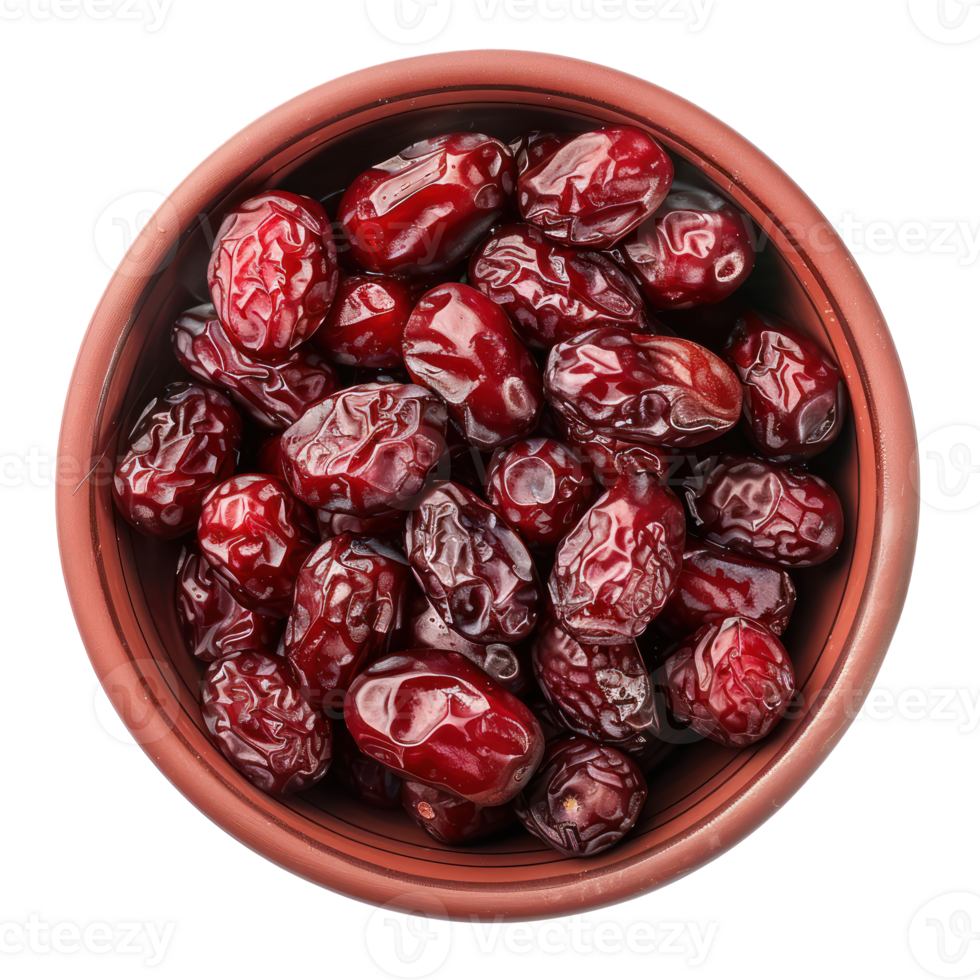 Dry red dates in a bowl top view isolate on transparency background Pro PNG