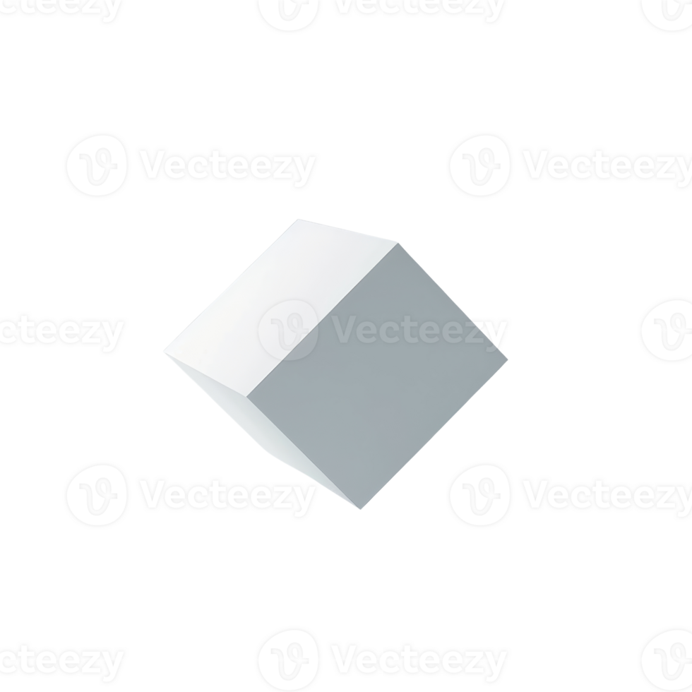 Minimalistic white and gray geometric cube shape isolated on transparent background. Modern design element for graphic, web, or architectural use. Pro PNG