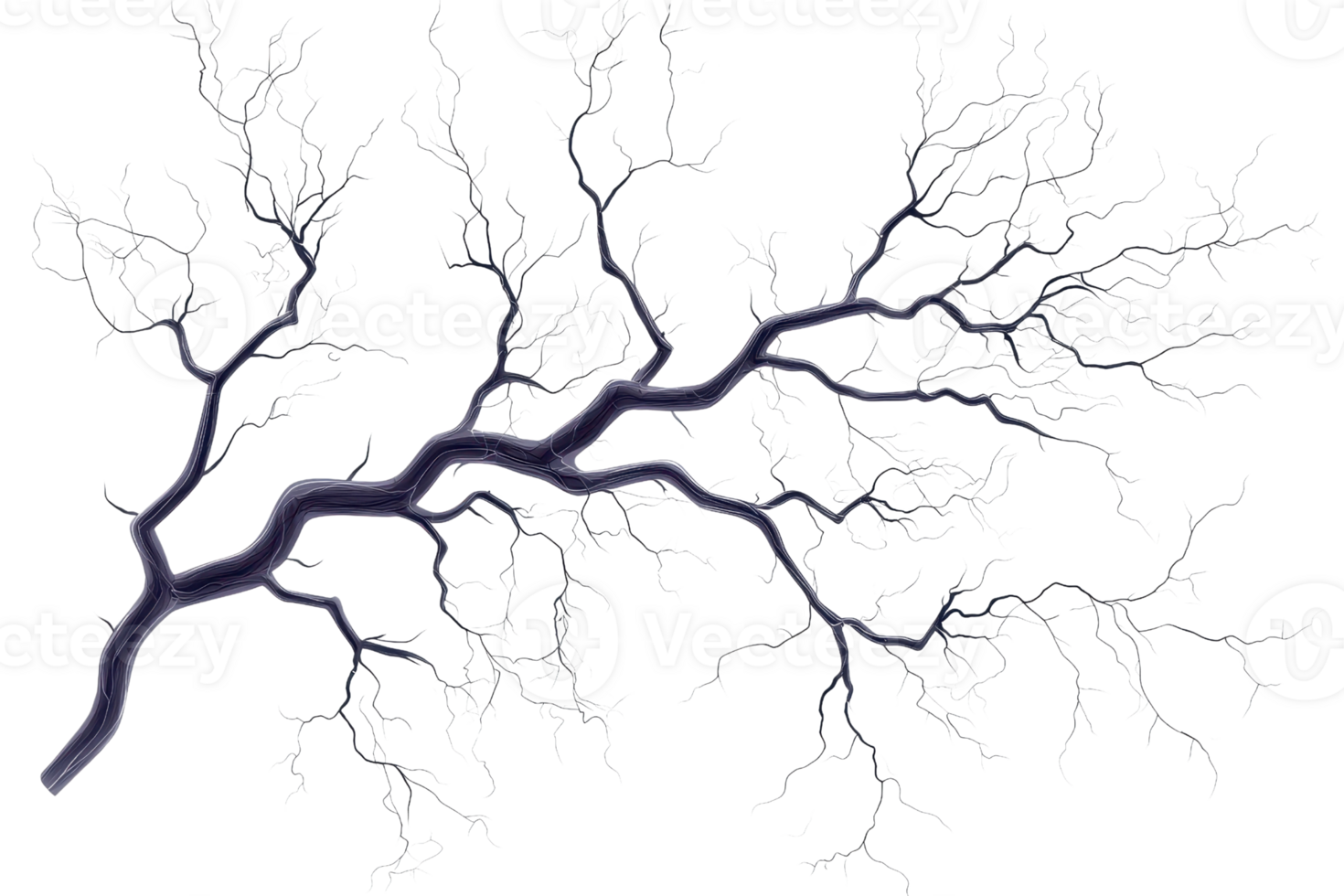 Detailed illustration of a complex, branching tree structure with intricate patterns, resembling veins or branches, on a transparent background. Pro PNG