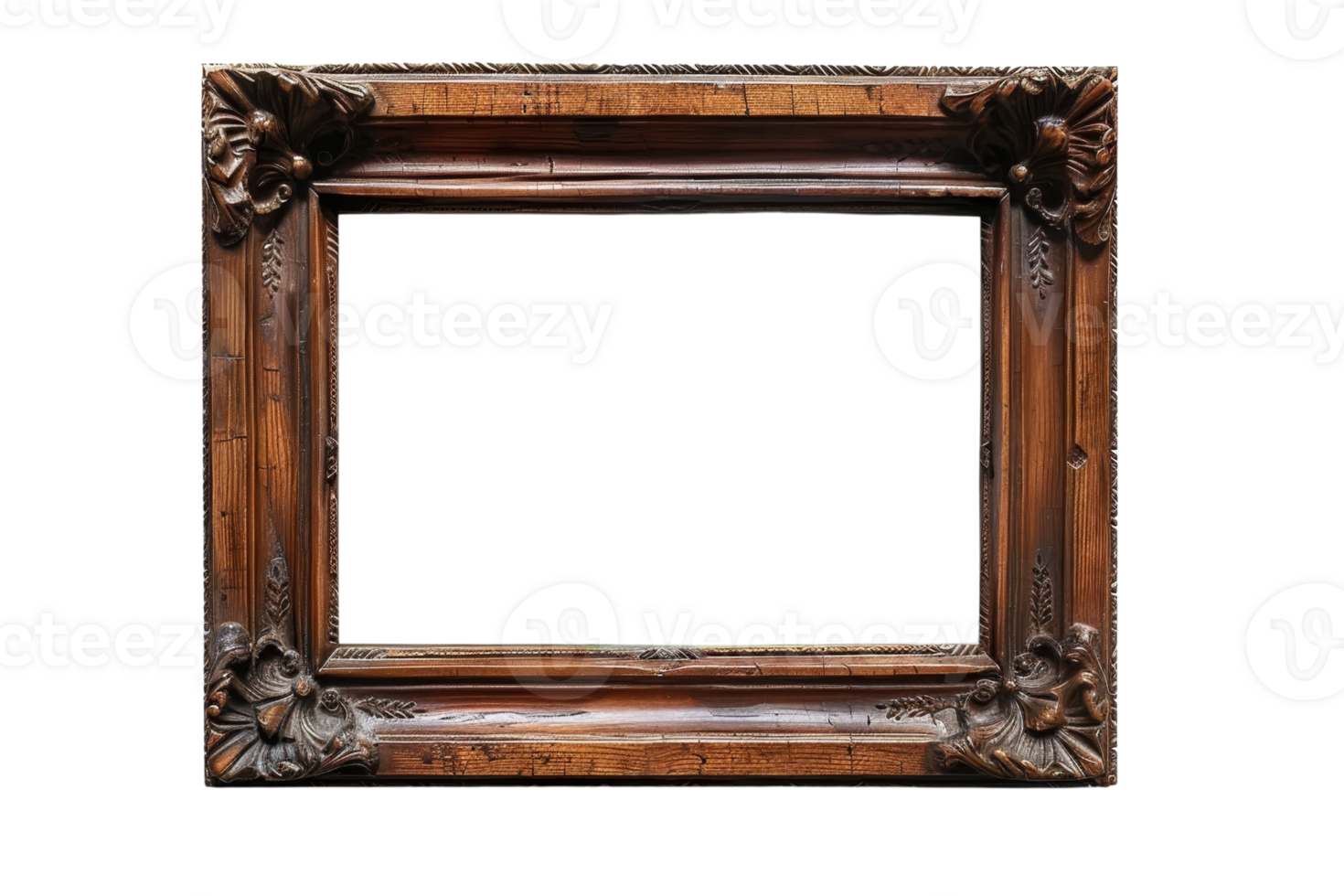 A wooden frame with a white background. The frame is empty and has a simple design Pro PNG