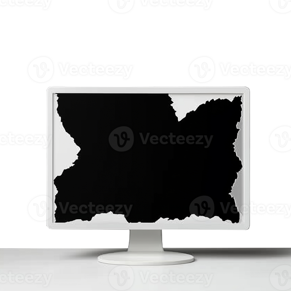 Desktop computer with a shattered screen, symbolic of technical issues or frustration, on a transparent background. Pro PNG