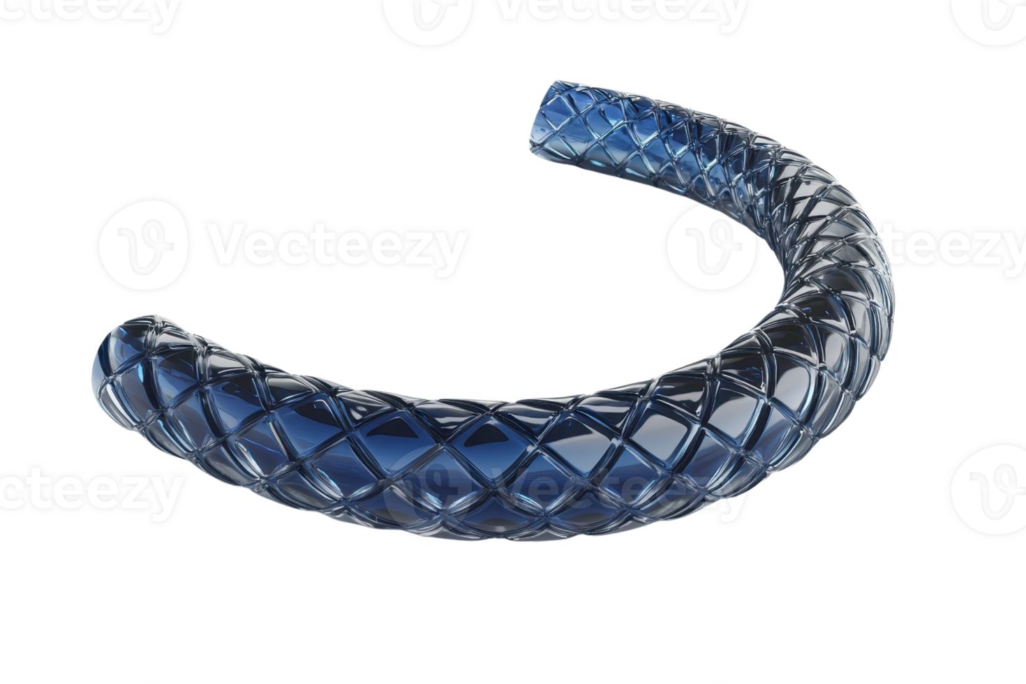 Abstract blue 3D geometric shape with intricate pattern, curved object design, isolated on transparent background. Pro PNG