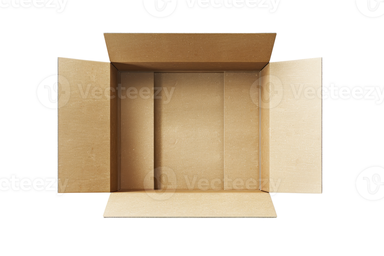 High-resolution image of an open cardboard box, perfect for use in packaging, shipping, and delivery-related projects. Pro PNG