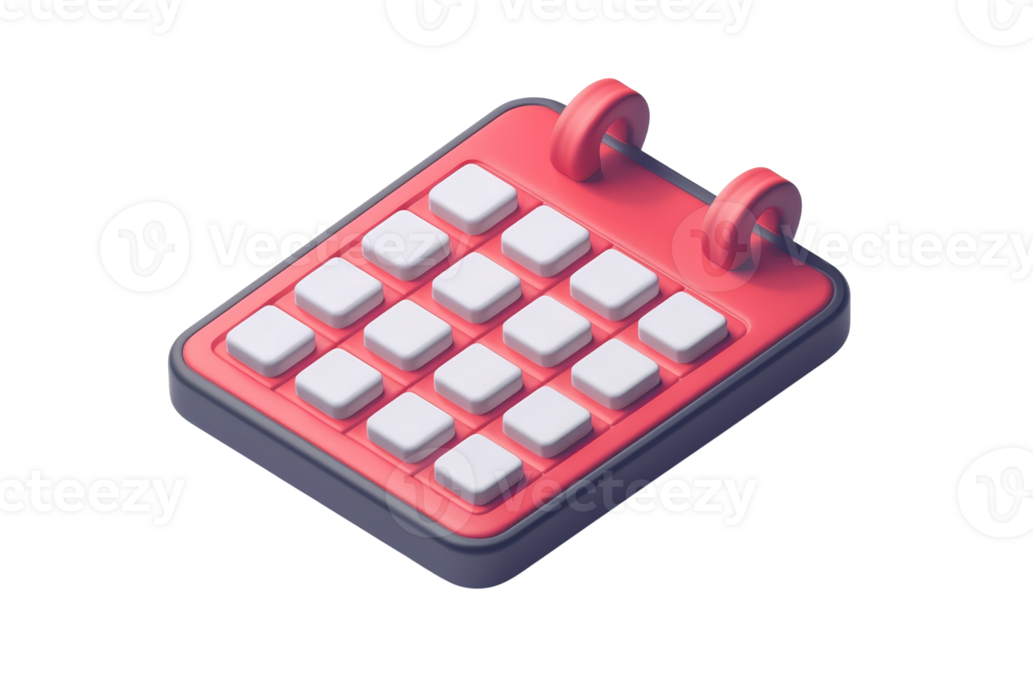 3D rendering of a simple, minimal desk calendar with a red frame and white buttons, isolated on a transparent background. Pro PNG