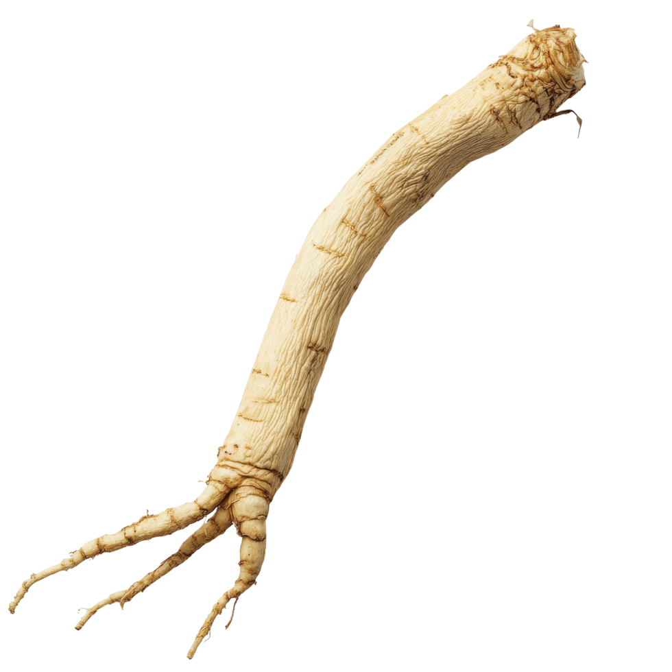Ginseng root displayed on a transparent background showcasing its unique elongated shape and texture, Ginseng on a transparent background png