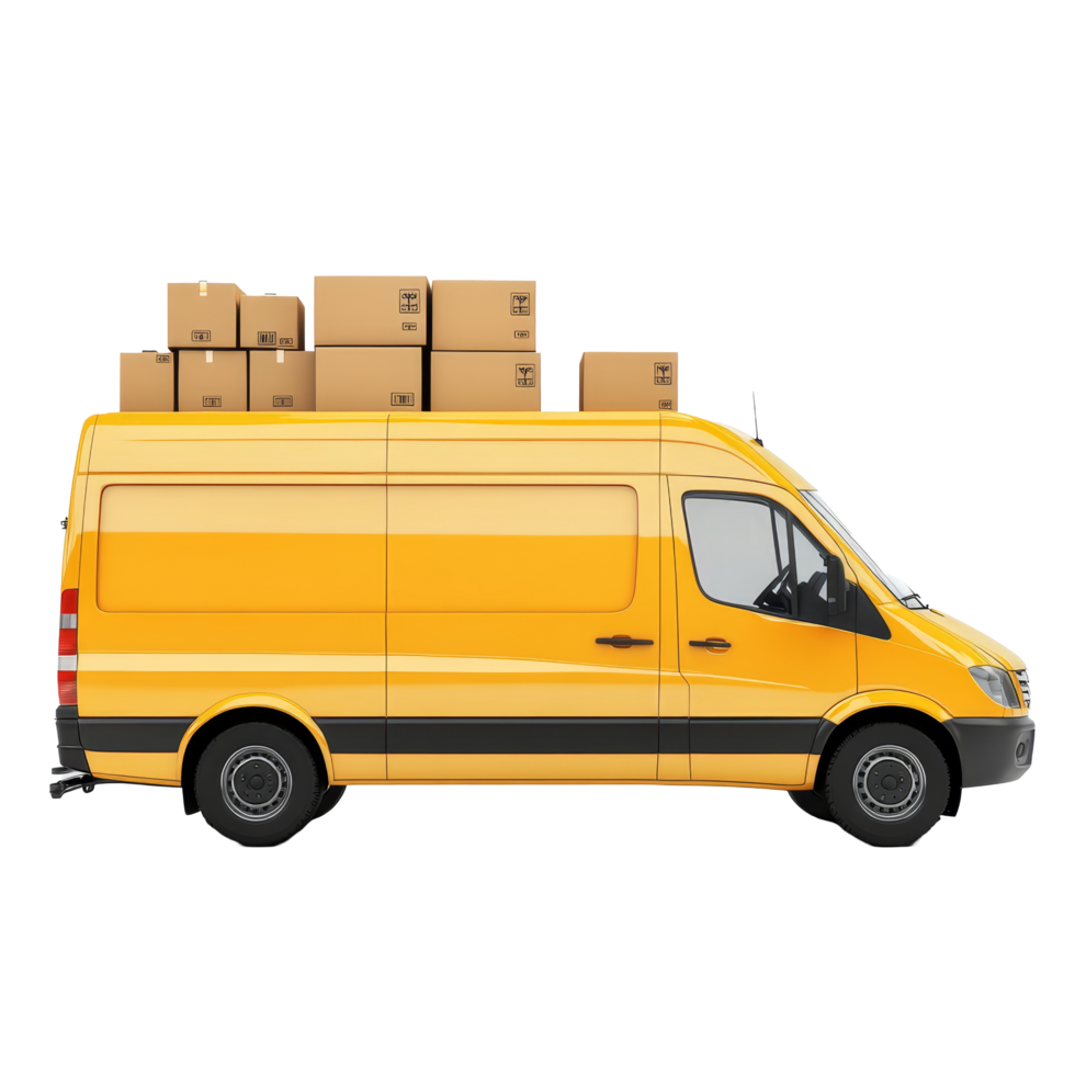 Delivery van loaded with multiple boxes ready to transport items efficiently, Delivery Van with Multiple Boxes on transparent background Free PNG
