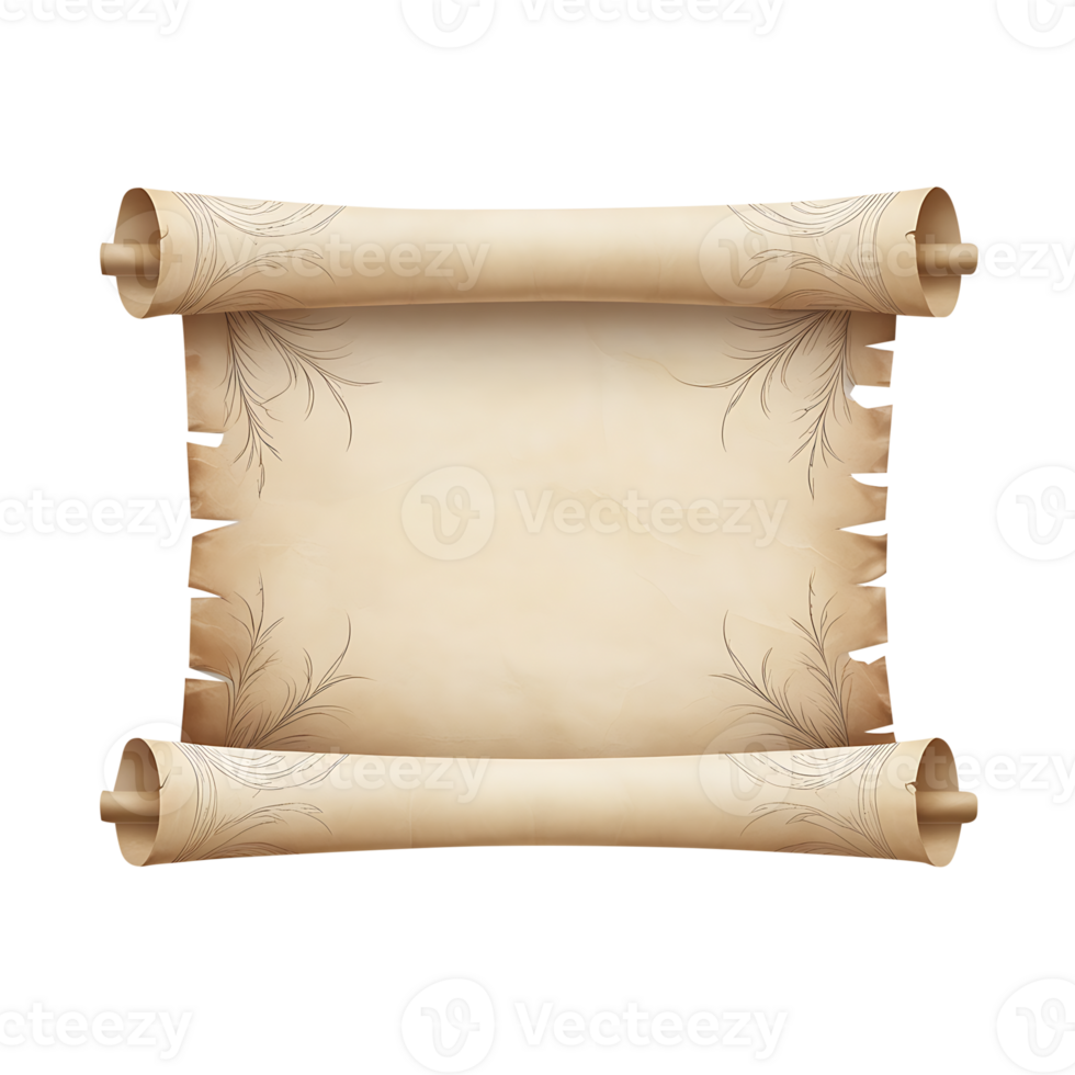 old parchment scroll with scroll paper, isolated on transparent background Pro PNG