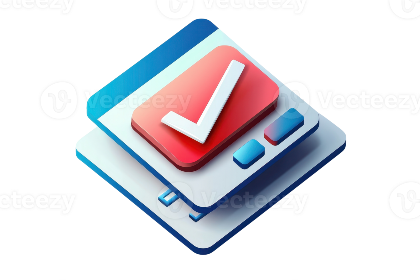 A stylized checkmark icon composed of layered shapes emphasizing verification and completion. Pro PNG