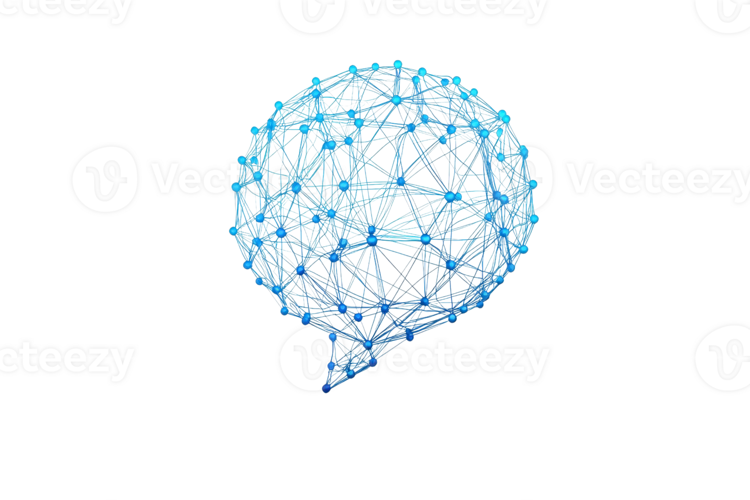 A network-like structure forming a speech bubble shape, composed of interconnected nodes and lines, representing communication. Pro PNG