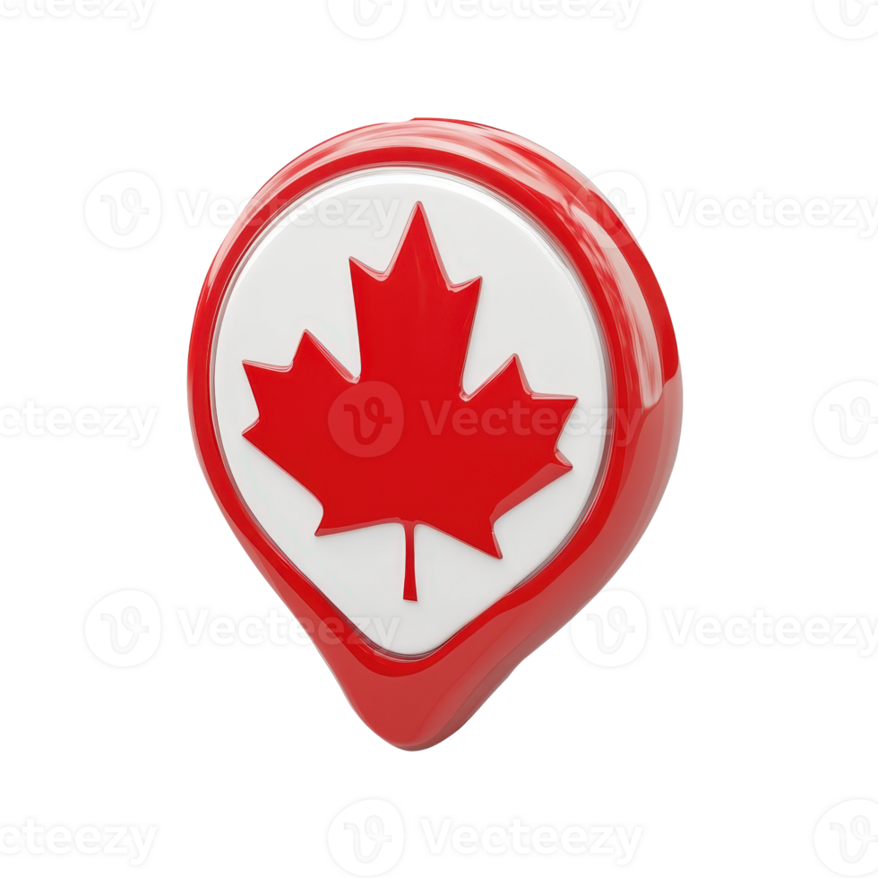 3d Canadian flag inside map pin pointer icon, floating on transparent backdrop Pro PNG