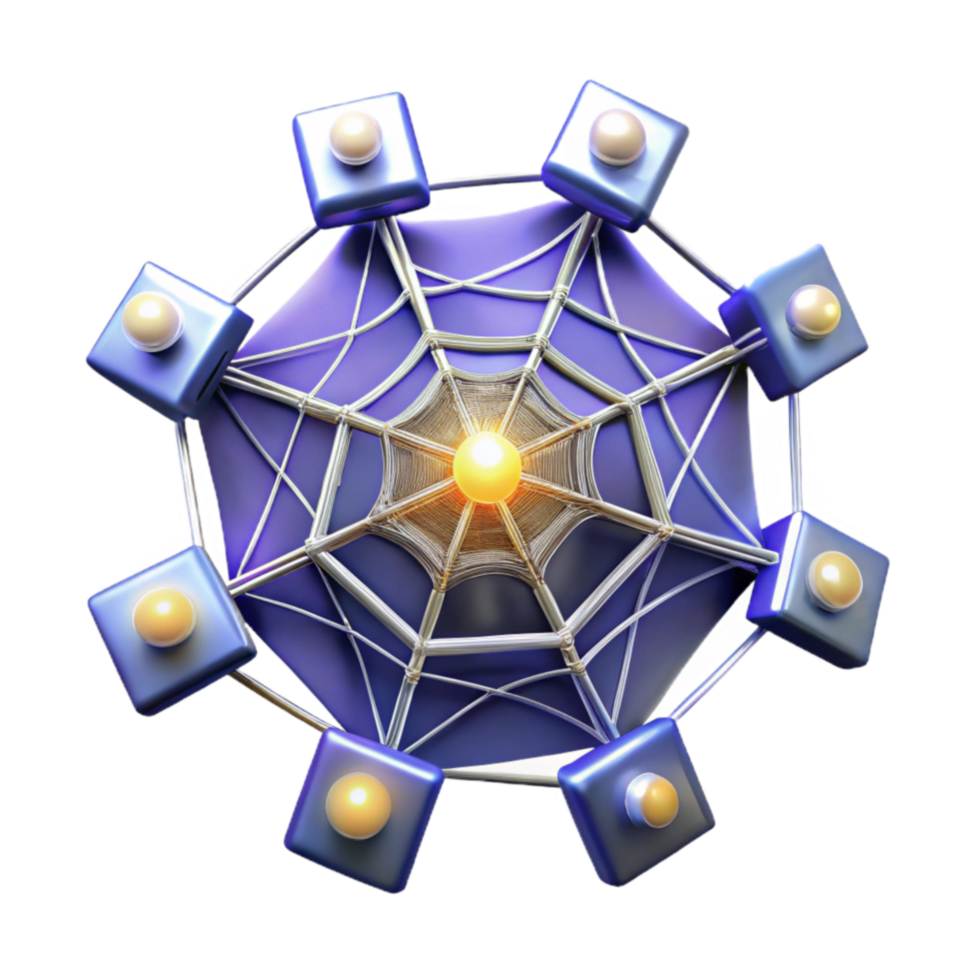 Abstract 3D Web Design Networked Sphere with Luminescent Nodes png