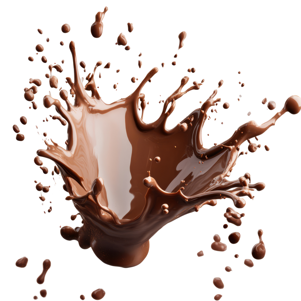 Chocolate splash creating dynamic patterns on a transparent background showing rich textures and colors, Isolated muffin with a cherry on top, transparent background Free PNG