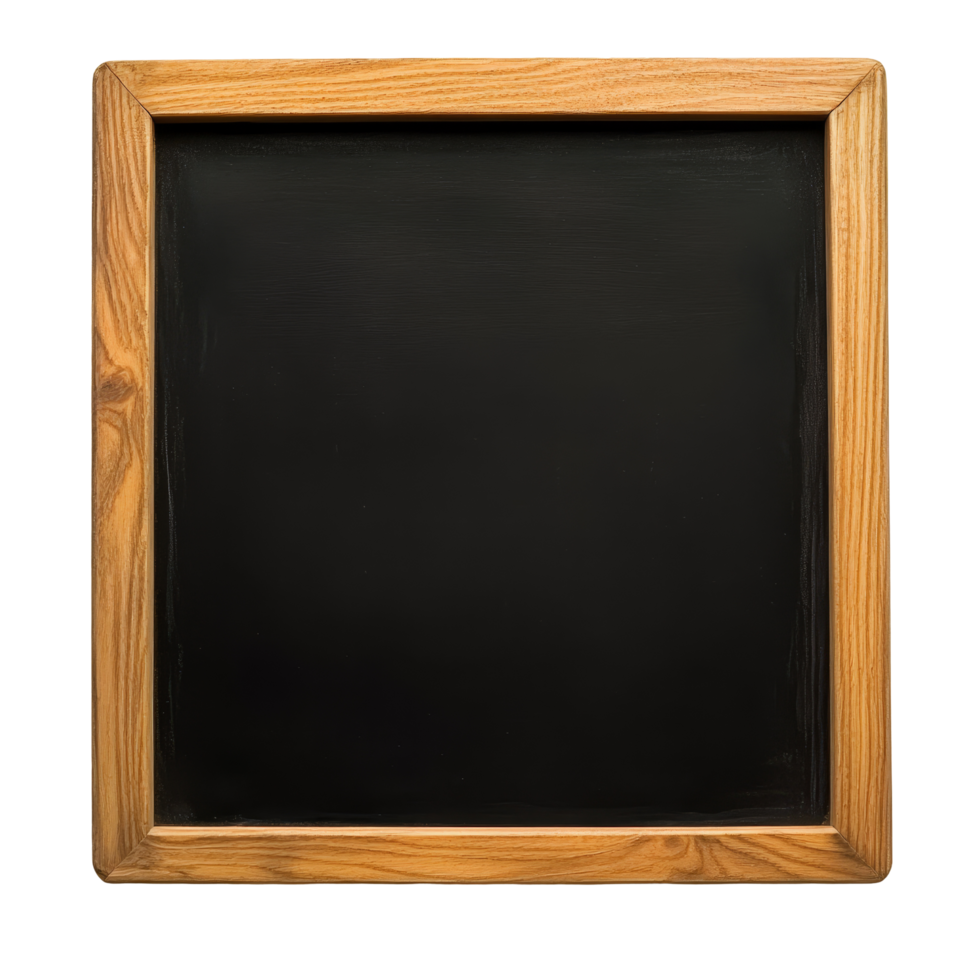 A blank blackboard with a wooden frame resting against a transparent background in a classroom setting, Blank Blackboard with Wooden Frame On transparent background png