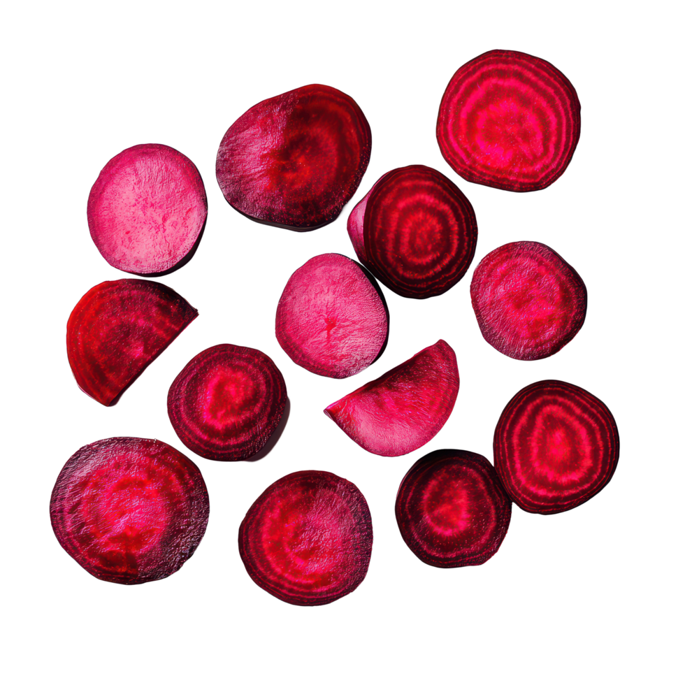 Freshly sliced beetroot arranged neatly on a transparent background showcasing their vibrant colors and unique patterns, Beetroot slices on transparent background png