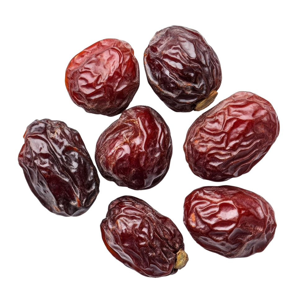 Dried jujube red dates displayed on a clean transparent background, highlighting their rich color and texture, Jujube Chinese dried red date fruit on transparent background Free PNG