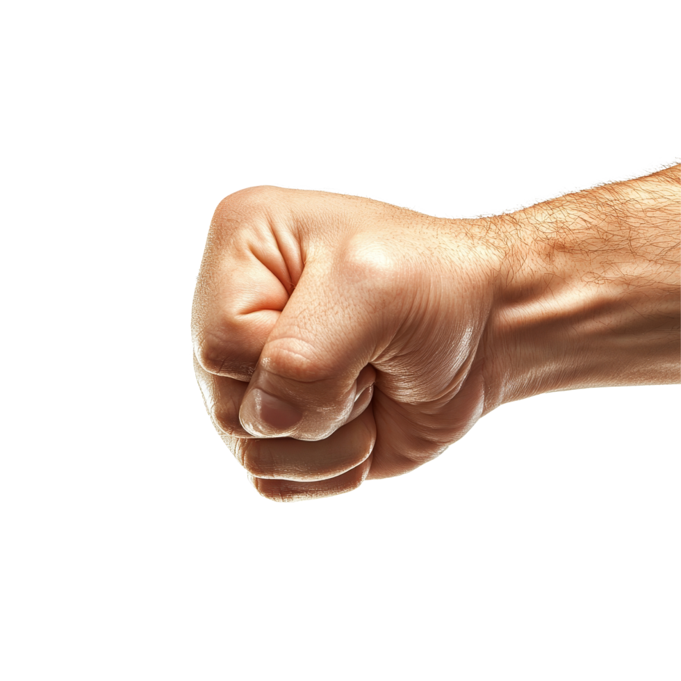 A strong fist thrust forward in a confident gesture against a clean transparent background, Fist outstretched forward, side view, isolated on transparent background png