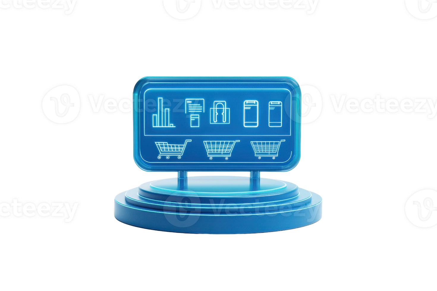 A modern digital display featuring shopping icons and data visuals, symbolizing e-commerce and analytics. Pro PNG