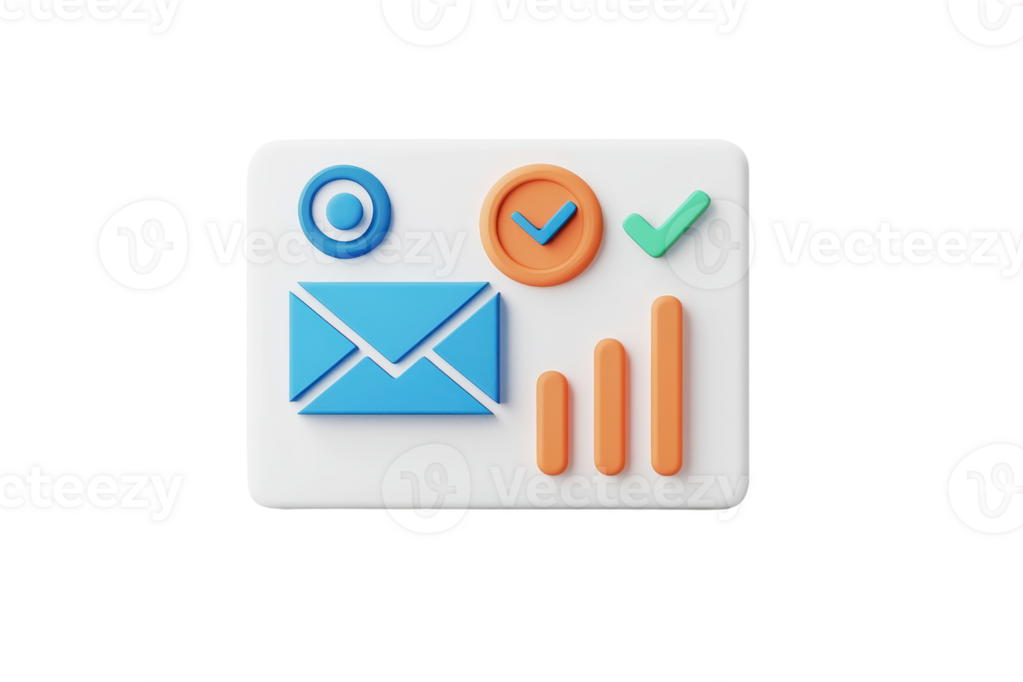A colorful icon featuring an envelope, checkmark, and bar graph, symbolizing email communication and data analytics. Pro PNG