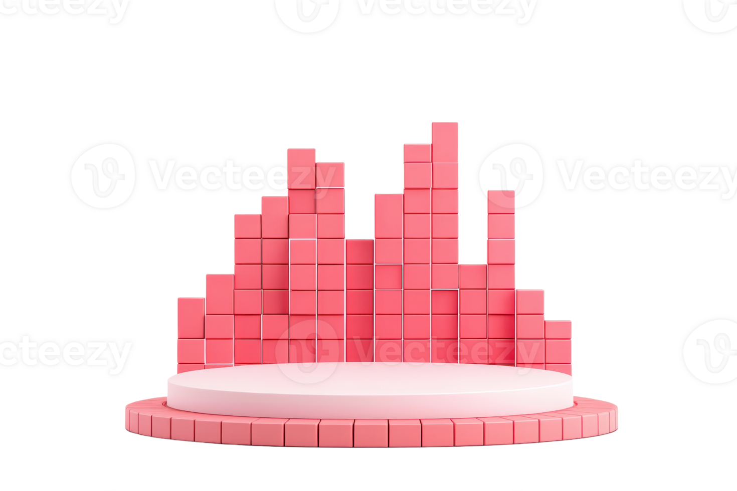 A series of pink blocks arranged in a rising pattern resembling a bar graph, alongside a circular platform. Pro PNG