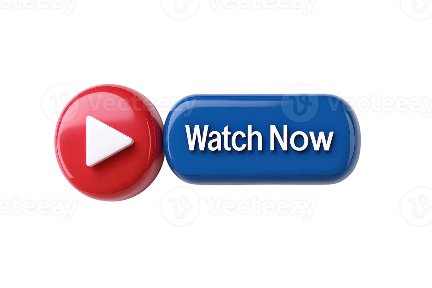 A red play button and a blue rectangular button with the text Watch Now are prominently displayed. Pro PNG