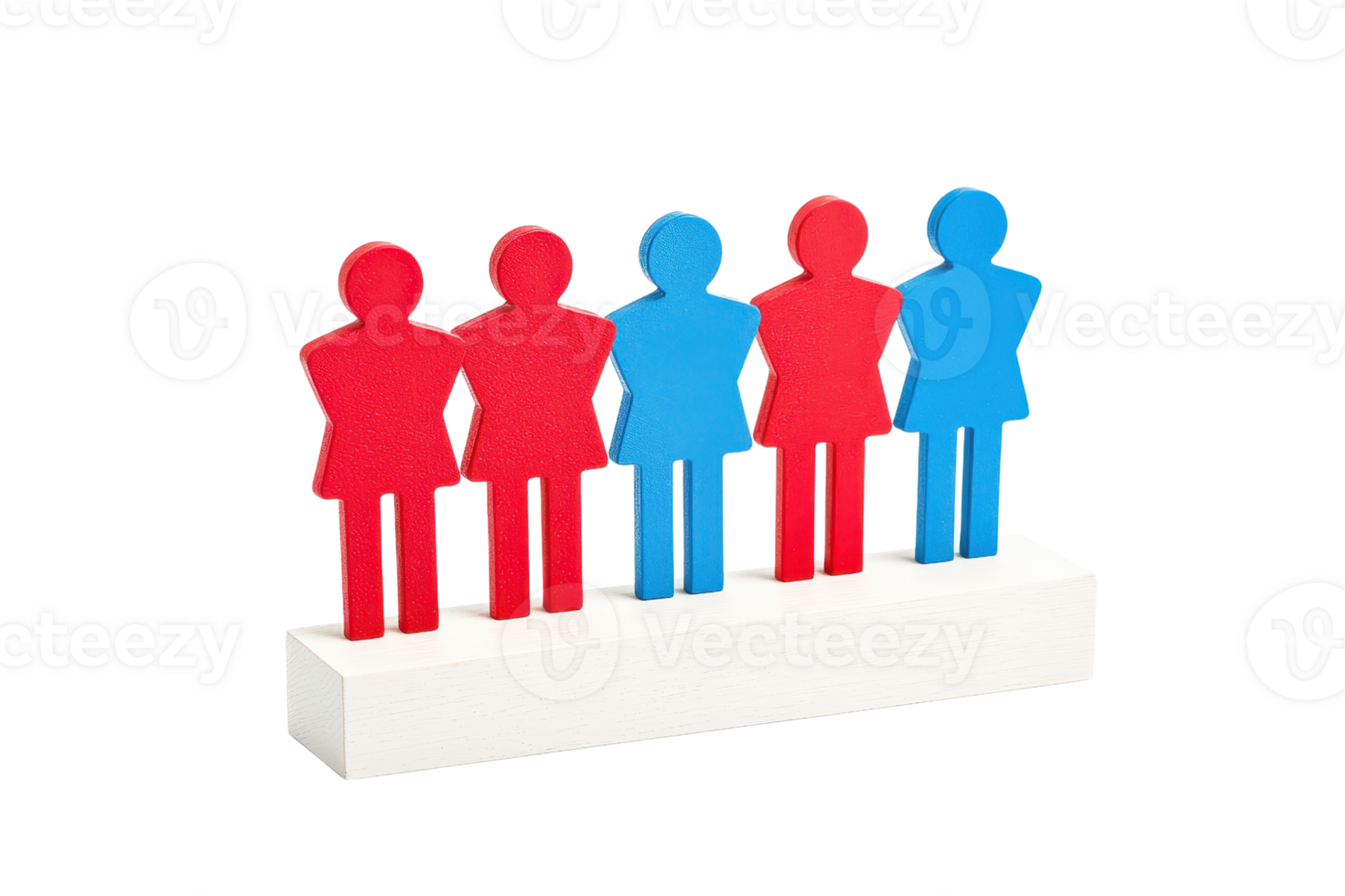 A group of stylized figures in red and blue, representing diversity and inclusion, mounted on a rectangular base. Pro PNG