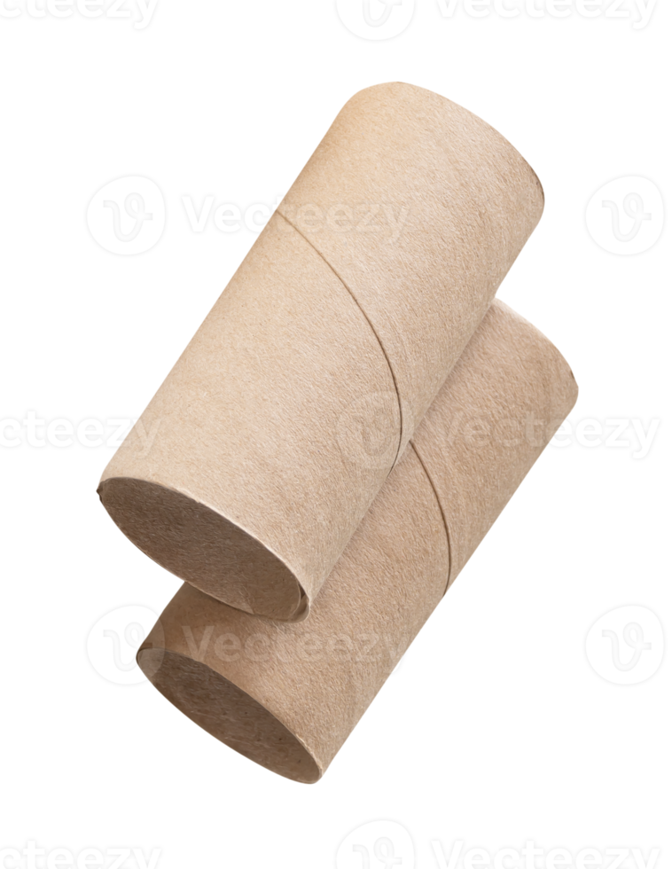 A stack of two tissue paper cores or toilet paper tubes after tissue paper use isolated with clipping path in file format Pro PNG