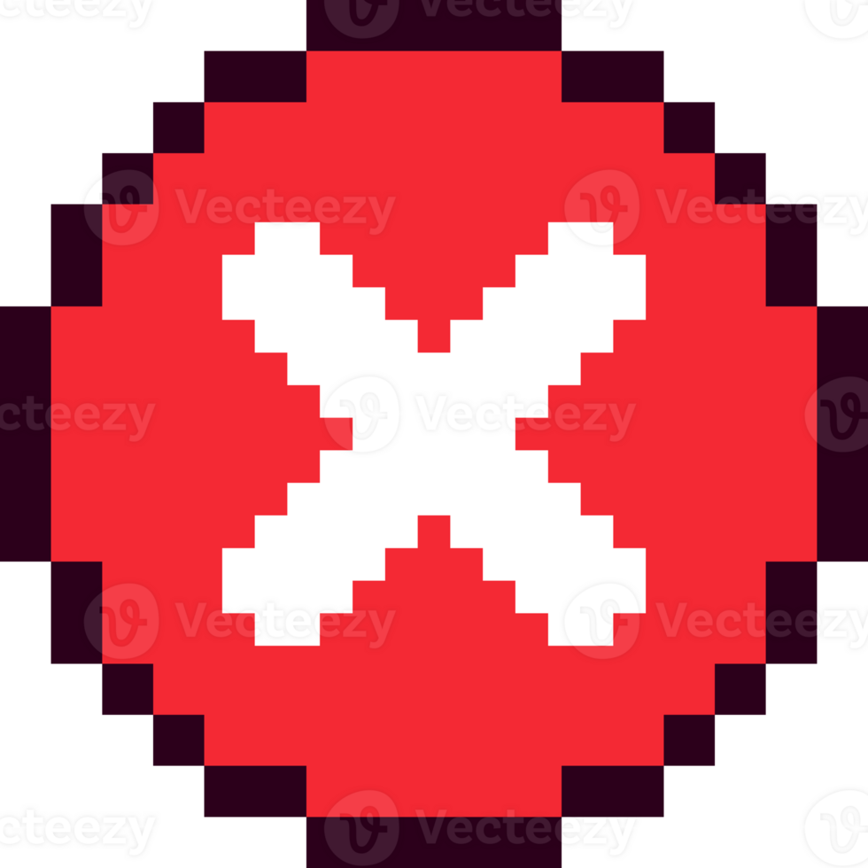 Decline button. 8 bit icon. Check mark icon. True and false buttons. Green and red buttons Pro PNG
