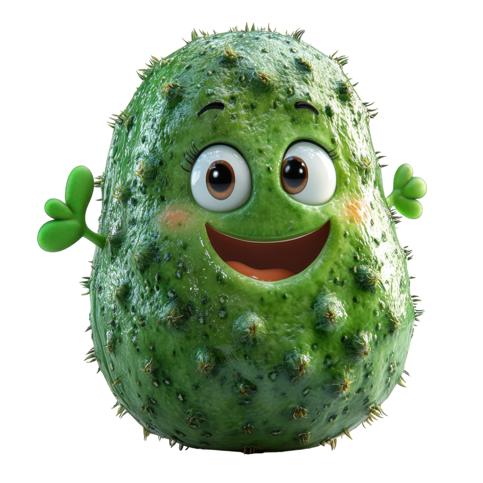 Cheerful animated cucumber character with a joyful expression and friendly demeanor in a cartoon style isolated on transparent background. png