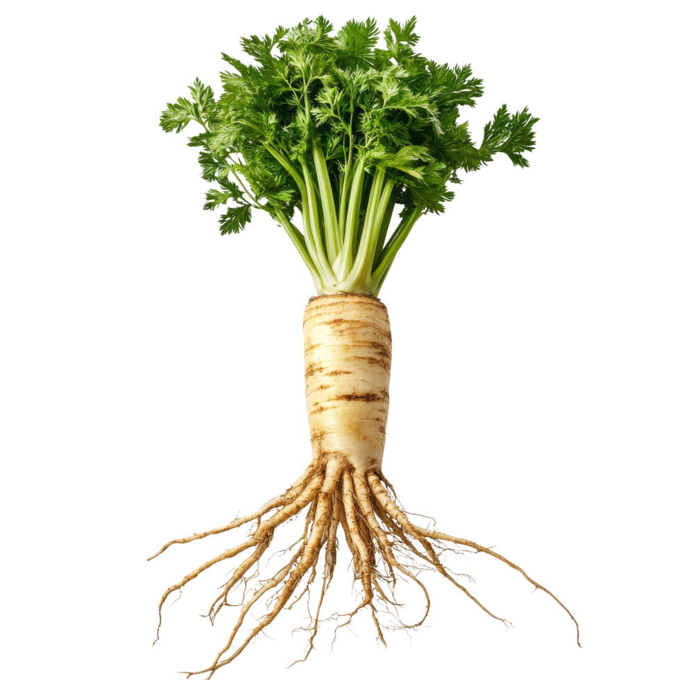 Fresh parsnip roots displayed on a transparent background illustrating their natural shape and texture, Parsnip roots on transparent png