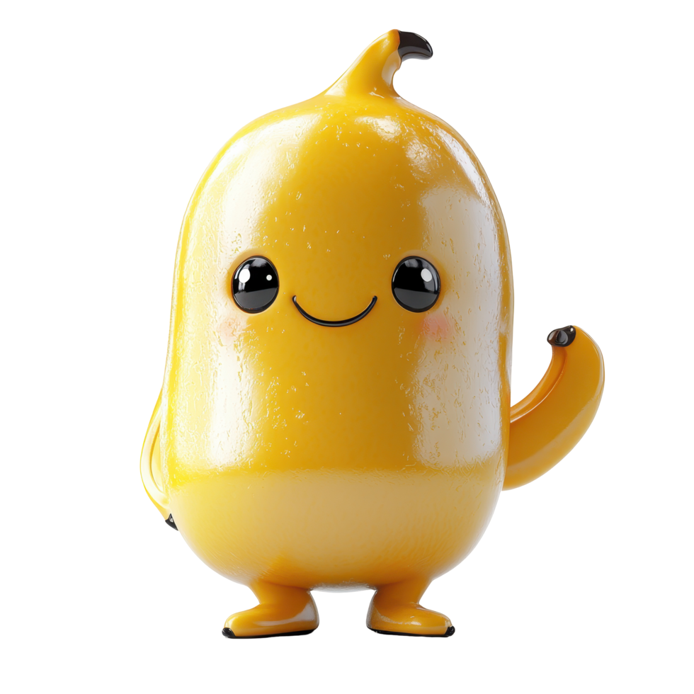 Cheerful yellow character smiling and waving with banana-like features in a vibrant and playful design isolated on transparent background. Free PNG