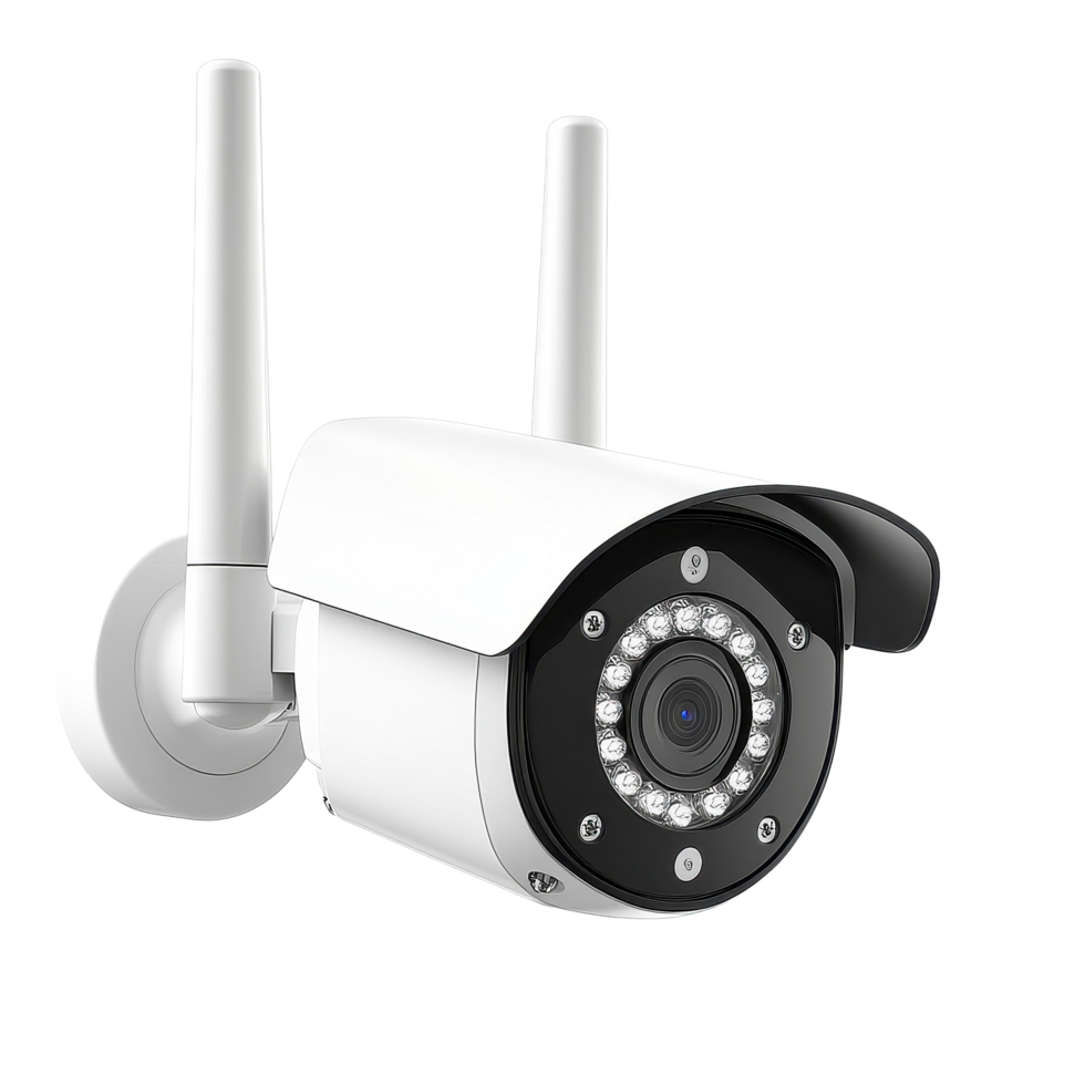Closeup view of a wifi connected security camera with clear night vision capabilities for home monitoring, Closeup view wifi connected security camera isolated on Transparent background Free PNG